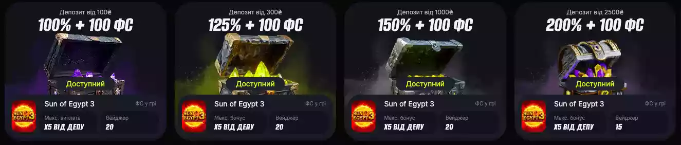 Депозит 300 ₴ → 125% + 100 spins