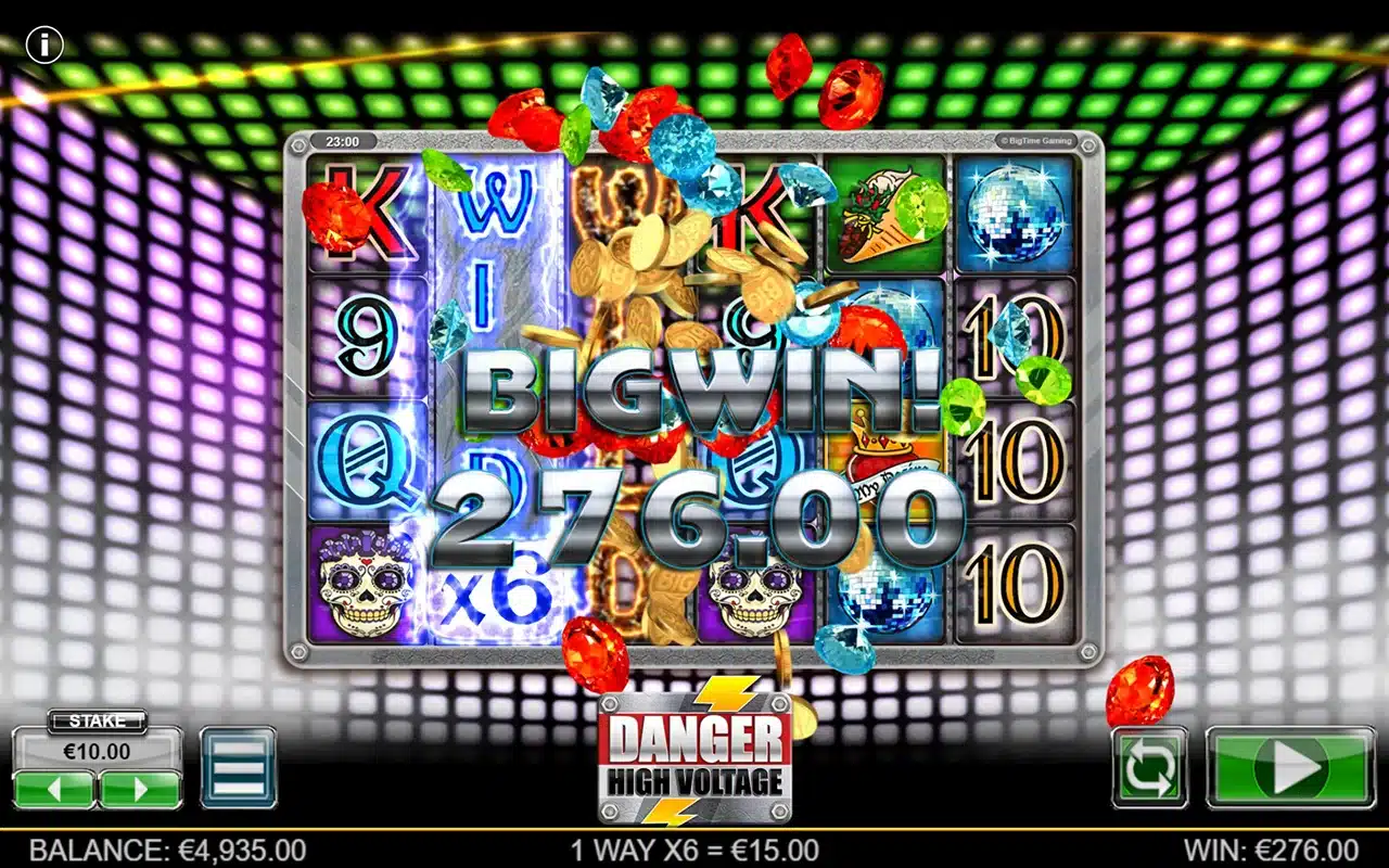 Danger High Voltage – слот для тих, хто любить ризик і грає по-крупному. Завдяки величезним множникам у бонусних раундах виграш тут може зрости в десятки разів. Максимальний потенційний виграш становить приголомшливі 15 746× від розміру ставки – справжня бомба! Звичайно, такі великі куші трапляються не щодня, адже гра доволі волатильна. Проте коли удача усміхається і ви зриваєте такий виграш – відчуття просто неймовірні, адже розумієш, заради чого ризикував!