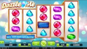 Wyposażony w wyraźnie zaktualizowany kształt 3-3-4-4-5 z 76 liniami wypłat, Dazzle Me oferuje mile widziany pomost między klasycznymi automatami online a nowoczesną rozgrywką. Na bębnach tego automatu NetEnt można znaleźć dzwonki, klejnoty i siódemki. Należy zauważyć, że tryb darmowych obrotów jest dość minimalistyczny i wymaga aktywacji symboli darmowych obrotów, które są dostarczane z funkcją połączonych bębnów.